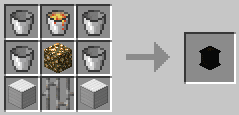 The Fume Funnel can be upgraded to a Filtered Fume Funnel by crafting it with a Fume Filter. The Fume Funnel is crafted with Iron Blocks, Empty Buckets, a Lava Bucket and a Glowstone block. |
