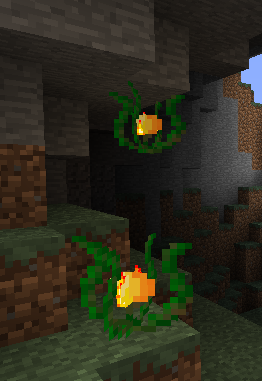 Glint Weed is a plant that gives of a natural light, almost the same as a torch. Glint weed is found by using Mutandis on another plant. Glint Weed will spread if planted on grass, dirt or sand. Glint Weed can be placed on most materials as a light source alternative to a torch. It can also be placed onto ceilings. Glint Weed can be harvested just by bashing it (shears are not needed). |