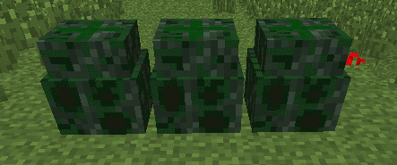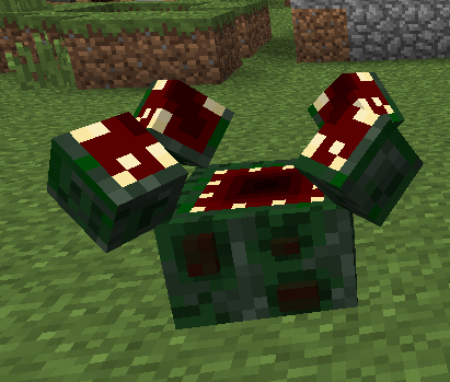 A leech chest is a mutated plant that has been fused with a chest, to create a hybrid being that acts like a chest but takes a blood sample from any player who opens it. The chest is created by placing a Trapped Chest on the ground and surrounding it with Vines on it's four sides. The vines must themselves be over a water source block. When the setup is complete, the chest must be hit with a Mutating Sprig to mutate the vines and the chest together. See the image on the right for the correct set up. The Leech Chest behaves like a normal Trapped Chest, although it cannot join to a second chest to become a double chest. When the Leech chest is opened, a drop of blood from the player will be stored in one of the chests three blood sacs. Blood from the last three players to open the chest will always be stored, although only one sample from each unique player. If a Taglock Kit is used on a Leech Chest that has a player's blood sample in a sac, that sample will be removed and placed into the Taglock Kit for use in the normal ways ( poppets or curses). Oddly, the chest will not allow a player to remove their own blood sample from it. Removal of a blood sample also requires the other player to be logged into the same world as the chest, although it is still possible to see the name of the player. If the Leech Chest is picked up and placed again, it will continue to store the last three blood samples it has taken. |