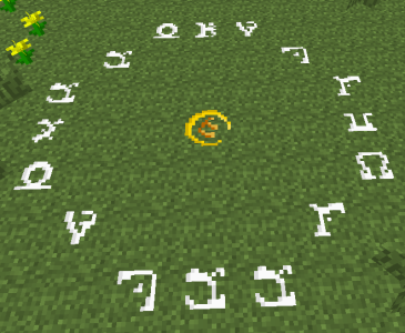 Ritual glyphs should be arranged in the roughly circular patterns as illustrated in the book Witchcraft: Circle Magic. With a heart glyph drawn with Golden Chalk in the center. |