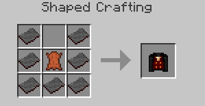 Vampires have a thing about looking dapper, and they have a few clothing options available to them that is made from a special material that gives some bonuses to their normal skills. Vampire clothing falls into two categories, either light armor or medium armor. Medium armor gives more protection, but offers less bonuses than a full set of light armor. A vampire may wear normal heavy armor (iron or diamond) but then they will have no bonuses in exchange for better armor protection. Vampires often accompany their special clothing with a Cane Sword. Vampire clothing is made from Woven Cruor, sometimes with leather pieces. Armored clothing uses the base piece with added iron ingots. Light armor piecesArmor values like leather, durability of iron, repaired with leather. Chest and hat can be dyed. Hat
