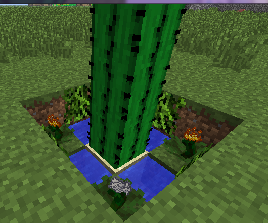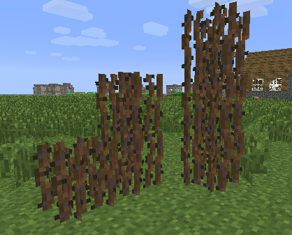 Wild bramble is a plant that causes damage to any creature or item that passes though it. It is very difficult to break down and when you do it spreads all over the place. The only assured way to stop it spreading is to use a golden axe to harvest it (or dig it up). Wild Brambles are mutated from a Cactus plant up to 4 blocks high