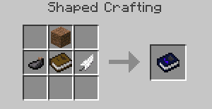 The book, Witches' Brews is the definitive guide to crafting, brewing and performing rituals with a Witches' Cauldron. The book is broken down into various sections describing the basics of crafting, potion brewing and ritual casting. It also contains a reference guide to all of the possible ingredients and what they do, split up in relevant sections. Unlike other books, this one features a system of linked pages, where keywords may be clicked on to jump to a different topic. A back button, and move up an index button exist to navigate backwards, while a next button allows the reader to view the next page in the current section. The book is created in a crafting table using a book (B), feather (F), ink sac (I), Dirt (D). Crafting Table --------------
