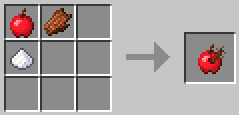 A Wormy Apple is an apple that has one or more worms living within it. Eating such an apple will most likely poison the eater. The apple is an ingredient for other recipes. To create a Wormy Apple, place an Apple, Sugar and Rotten Flesh into a crafting table. |